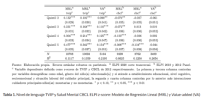 Por lo tanto, abordar esta brecha en las etapas más tempranas puede proporcionar una oportunidad para que niños y niñas en entornos vulnerables, puedan alcanzar su potencial de desarrollo y disminuir las desigualdades multidimensionales descritas con consecuencias de mediano y largo plazo en brechas académicas, laborales y de salud mental, lo que explícitamente se traduce en bajos niveles de capital humano, productividad y crecimiento económico. En efecto, un estudio (Jervis, 2012) que utiliza las encuestas ELPI 2010 y 2012 y funciones de producción contemporáneas y de value-added3, muestra cómo las brechas socioeconómicas se reducen una vez que los cuidadores principales se involucran en el cuidado diario de los niños y niñas, por medio de inversiones monetarias como juegos didácticos, y no monetarias como interactuar y pasar tiempo juntos cantando y leyendo historias, entre otras, además de la forma positiva de reaccionar a las conductas de los niños y niñas como se muestra en la Tabla 1 pasando de 0,48 z-scores en el 20% más rico (quintil 5) a 0,34 z-scores para lenguaje (TVIP) y de 0,31 z-scores a 0,13 z-score para salud mental (CBCL). Efectos que son aún menores en ambas dimensiones al utilizar la metodología value-added.